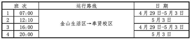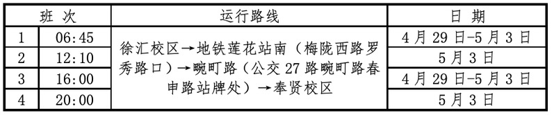 1.4月29日—5月3日教職工班車按照以下班次運行。