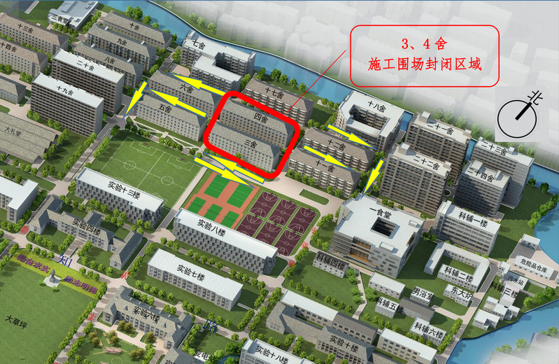 為改善徐匯校區學生住宿條件,學校計劃對徐匯校區學生宿舍3舍、4舍進行修繕施工。為確保師生安全,修繕期間需對周邊道路進行臨時封閉,特公告如下。