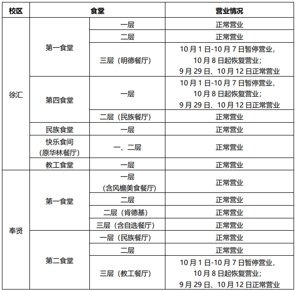 2. 其余教學樓自習教室:10月1日-10月6日關閉,10月7日起恢復正常;