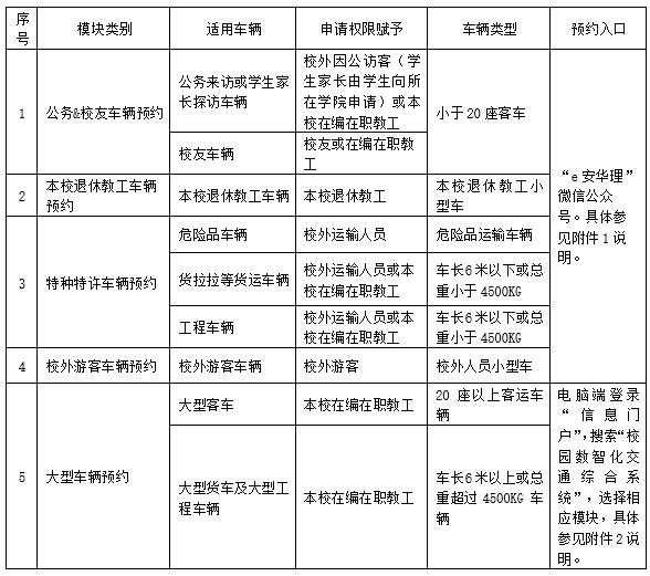 已辦理機動車通行證的本校師生員工車輛入校規則不變,無需通過系統預約入校。