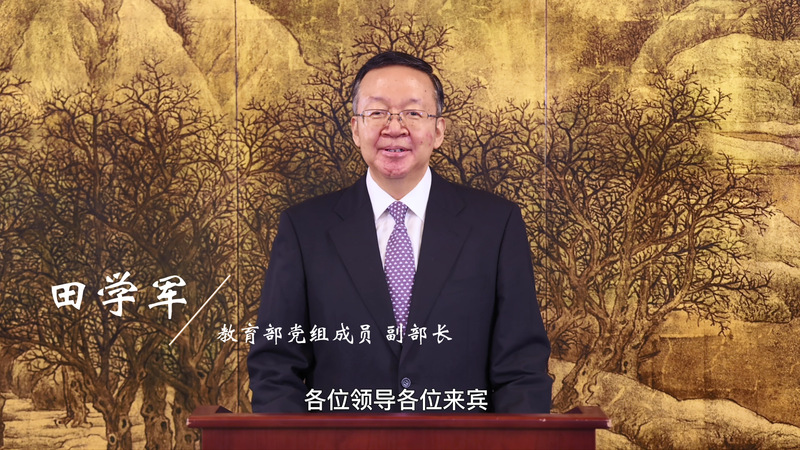 圖片說明:教育部黨組成員、副部長田學軍發表視頻講話