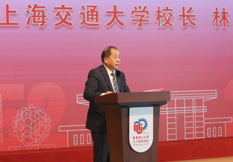 上海交通大學校長、中國工程院院士林忠欽作為兄弟高校代表致辭。他表示,華東理工大學與上海交通大學淵源深厚、血脈相連、學緣相近、文化相親,兩校充分發揮互通互聯的先天優勢,形成了多層面、深層次、高層級的交流合作格局。展望未來,相信兩校友誼之樹會更加枝繁葉茂,為建設教育強國、人才強國、科技強國作出新的更大的貢獻。