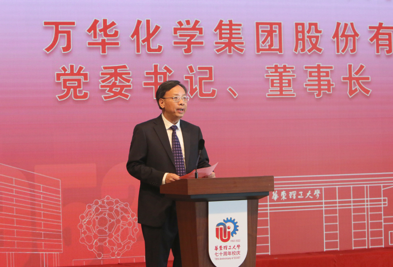 萬華化學集團股份有限公司黨委書記、董事長,1983屆化機系校友廖增太先生作為校友代表發言。憶及求學時光,他感念母校的培養,并表示,廣大華理校友恪守“勤奮求實,勵志明德”的校訓,在各自崗位上作出了應有的貢獻,未來將一如既往地關心和支持母校的發展,在祖國大地上抒寫屬于華理人的絢爛華章。