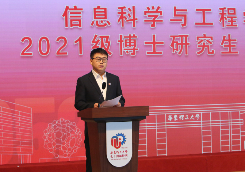 圖片說明:信息科學與工程學院2021級博士研究生楊孟平作為學生代表發言