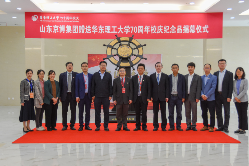 10月29日上午,山東京博控股集團贈送學校70周年校慶紀念品揭幕儀式在華東理工大學徐匯校區圖書館舉行。我校副校長朱為宏、山東京博控股集團董事兼CTO劉原代表校企雙方揭幕并致辭。儀式由化工學院黨委書記朱學棟主持。