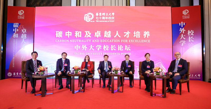 10月29日下午,在慶祝華東理工大學建校70周年之際,“碳中和及卓越人才培養”中外大學校長論壇在上海成功舉行。來自國內外10余所大學的校長,以及海內外“雙碳”領域的專家學者們匯聚一堂,共同探討碳中和目標背景下產教融合、科技攻關、創新人才培養的理念、思路與舉措。論壇采用線上線下相結合的方式舉行,同步面向全球進行線上直播。