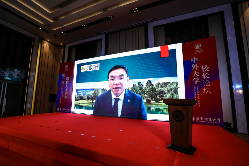 上海市政協副主席、中國工程院院士、上海交通大學講席教授黃震,教育部科學技術與信息化司司長雷朝滋,上海市教育委員會副主任李永智,英國薩里大學校長、英國皇家工程院院士、澳大利亞科學院院士、澳大利亞技術科學與工程院院士、中國科學院外籍院士逯高清,英國利茲大學常務副校長、英國皇家工程院院士余海歲,法國雷恩國立高等化工學校校長瑞吉斯?戈蒂埃,華東師范大學校長、中國工程院院士錢旭紅,上海大學校長、中國科學院院士劉昌勝,四川大學常務副校長、中國工程院院士許唯臨,上海紐約大學副校長丁樹哲,寧波諾丁漢大學副校長吳韜,昆山杜克大學副校長瑪西婭·弗朗斯,聯合國工業發展組織投資與技術促進辦公室主任、上海交大-聯合國工業發展組織綠色增長聯合研究院聯合院長趙曉蕾,以及華東理工大學黨委書記杜慧芳,中國工程院院士涂善東,黨委副書記沈海濤,副校長朱為宏等出席本次論壇。論壇由華東理工大學副校長李劍主持。