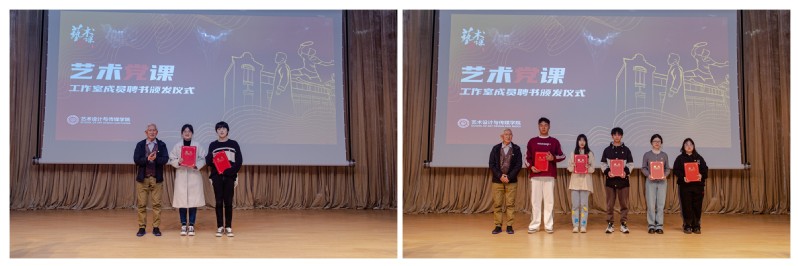 2023年,藝術設計與傳媒學院專門成立了“藝術黨課工作室”,黨課的籌備和組織逐步體系化、規模化,黨課與專業教育的融合也更加緊密。借此五周年紀念活動之際,柳冠中為“藝術黨課工作室”首批成員頒發聘書,以此鼓勵更多同學參與到藝術黨課的建設中來。