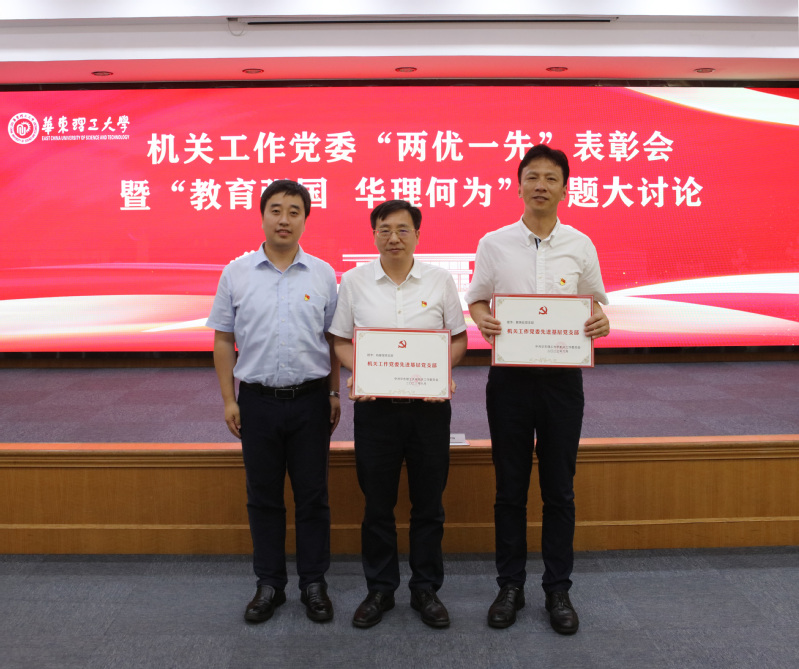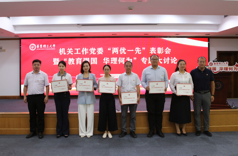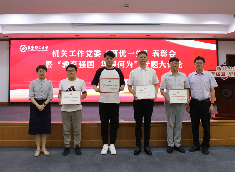 為慶祝中國(guó)共產(chǎn)黨成立102周年,持續(xù)推動(dòng)學(xué)習(xí)貫徹習(xí)近平新時(shí)代中國(guó)特色社會(huì)主義思想主題教育走深走實(shí),6月27日下午,機(jī)關(guān)工作黨委在逸夫樓演講廳召開(kāi)“兩優(yōu)一先”表彰會(huì)暨“教育強(qiáng)國(guó) 華理何為”專(zhuān)題大討論。校黨委書(shū)記杜慧芳出席會(huì)議并講話,機(jī)關(guān)工作黨委委員、機(jī)關(guān)黨支部書(shū)記、特邀發(fā)言代表、機(jī)關(guān)“兩優(yōu)一先”受表彰對(duì)象、獲評(píng)學(xué)校“兩優(yōu)一先”的機(jī)關(guān)代表等參加會(huì)議。會(huì)議由機(jī)關(guān)工作黨委副書(shū)記周曉梅主持。