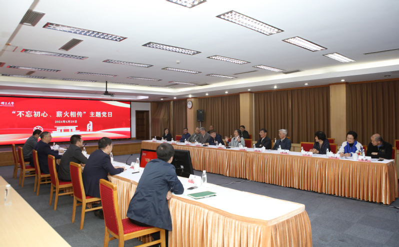 為進一步深入學習貫徹習近平新時代中國特色社會主義思想,認真落實黨紀學習教育工作要求,4月28日,學校召開“不忘初心、薪火相傳”主題黨日活動,邀請退休局級老領導歡聚一堂、暢敘情誼、共謀發展。校黨委書記蔣傳海出席并講話,校黨委副書記宋來,校黨委副書記、紀委書記龔躍參加座談會。會議由校黨委副書記沈海濤主持。