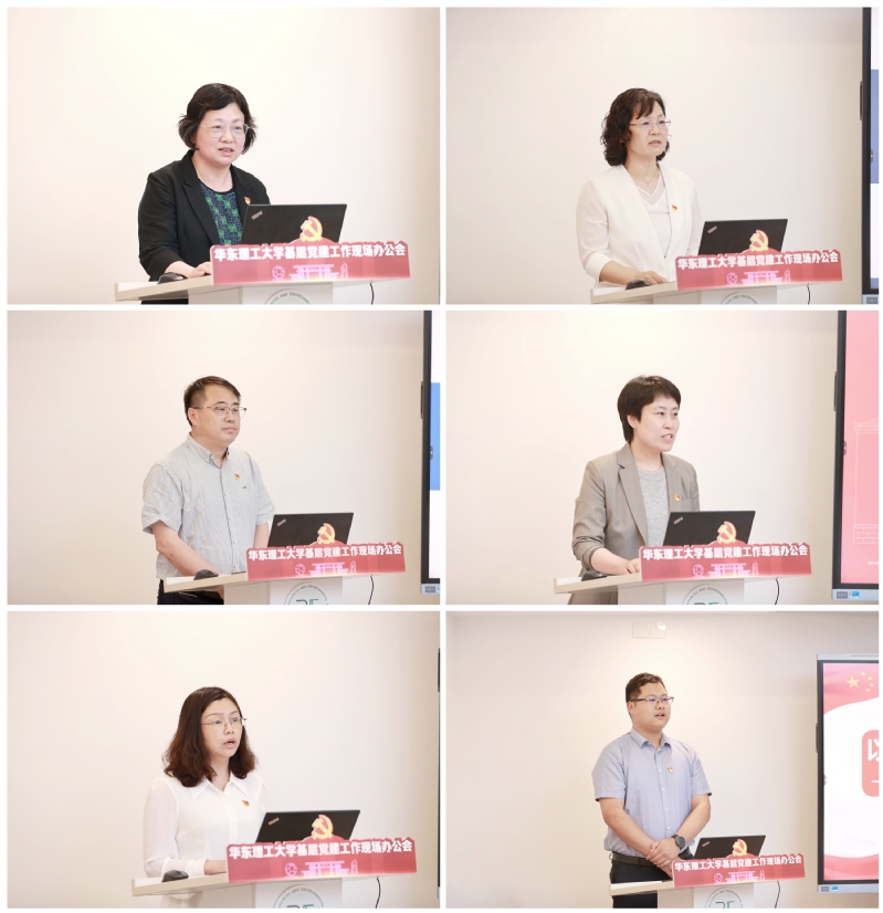 會上,化學學院黨委書記張文清、資環學院黨委書記修光利分別匯報了“全國黨建工作標桿院系”和“上海黨建工作標桿院系”建設成效。馬克思主義學院黨委副書記兼紀委書記盧楊、藥學院藥物科學系教工黨支部書記黃瑾分別匯報了“全國黨建工作樣板支部”“上海黨建工作樣板支部”創建工作開展情況。機動學院博士生第二黨支部書記聶文睿匯報了“全國高校百個研究生樣板黨支部”創建工作開展情況。教工部部長錢嫦萍、學工部部長崔姍姍、教務處處長黃婕、研工部部長孫洪鋒等代表相關職能部處就做好基層黨建工作作了交流發言。