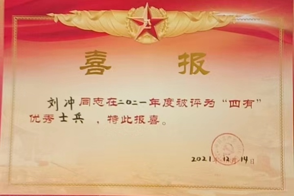 圖說:劉沖獲評“四有”優秀士兵
