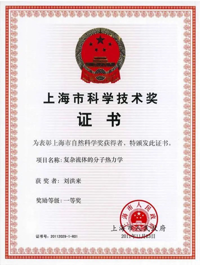 在后續研究中,劉洪來不斷開辟學科新方向,并取得了豐碩成果:建立了高分子系統的分子熱力學模型和液液平衡的計算機模擬新方法,獲1998年教育部科技進步一等獎;提出現代分子熱力學研究方法,建立了基于締合統計理論的復雜流體分子熱力學模型,獲2011年上海市自然科學一等獎;基于聚合物刷的Pickering界面催化體系構建與熱力學機制,獲2022年中國化工學會基礎研究成果二等獎。