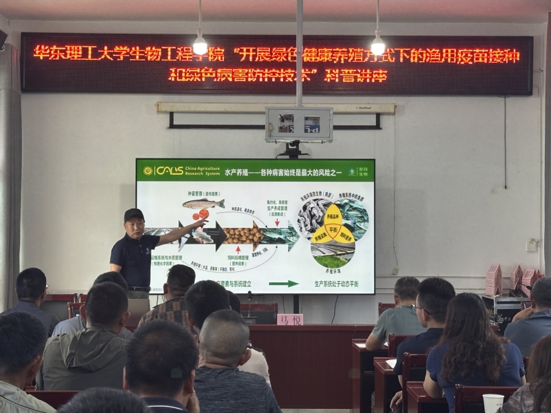 7月8日至7月11日,生工學院馬悅副教授帶隊赴尋甸縣開展科技幫扶,與尋甸縣農業農村局及企業座談交流,調研以虹鱒魚、鱘魚為代表的冷水魚養殖業在生產培育和健康管理方面遇到的技術瓶頸與困難。馬悅以漁用疫苗接種和綠色病害防控技術為題,為100余位養殖戶作講座培訓。此外,生工學院還在尋甸縣成立科研教學實踐基地,為淡水魚養殖和健康管理提供全周期專業支持,受到當地養殖戶歡迎。