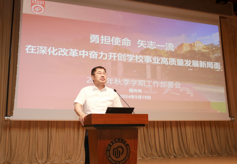 為進(jìn)一步凝聚奮進(jìn)力量,高質(zhì)量推進(jìn)學(xué)校年度重點(diǎn)工作落地見效,9月18日下午,華東理工大學(xué)2024年秋季學(xué)期工作部署會暨黨委理論學(xué)習(xí)中心組(擴(kuò)大)學(xué)習(xí)會在商學(xué)院大樓406室召開。校黨委書記蔣傳海、校長軒福貞出席會議并講話,部署秋季學(xué)期學(xué)校黨政重點(diǎn)工作。會議由蔣傳海主持。
