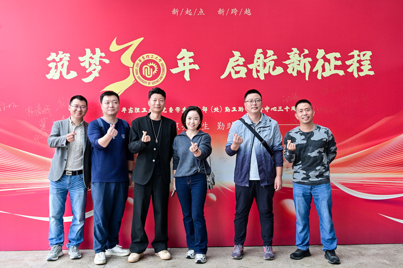 會議伊始,校黨委副書記宋來、沈海濤,校友代表謝應波、吳國邦、劉漢偉,原勤工助學指導中心主任徐美華,在校學生代表馬萍共同為勤工助學三十周年主題活動啟動。
