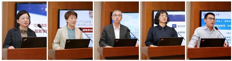 座談會(huì)上,校黨委常委、組織部部長夏江雯就強(qiáng)化黨建引領(lǐng),建設(shè)高素質(zhì)干部隊(duì)伍,服務(wù)學(xué)校事業(yè)高質(zhì)量發(fā)展的基本情況進(jìn)行了匯報(bào),分析了存在的問題并提出工作思路和舉措。紀(jì)委副書記、紀(jì)委辦主任、監(jiān)察處處長馬玲,宣傳部部長柴華分別就黨風(fēng)廉政建設(shè)和黨內(nèi)監(jiān)督工作、意識(shí)形態(tài)工作情況作了交流匯報(bào)。化學(xué)學(xué)院黨委書記張文清、生工學(xué)院教工第二黨支部書記陽大海分別就學(xué)院黨建工作開展成效、“雙帶頭人”黨支部建設(shè)情況進(jìn)行了交流匯報(bào)。與會(huì)代表就加強(qiáng)黨的領(lǐng)導(dǎo)和黨的建設(shè)、促進(jìn)黨建工作與業(yè)務(wù)工作深度融合等進(jìn)行了深入交流和討論。